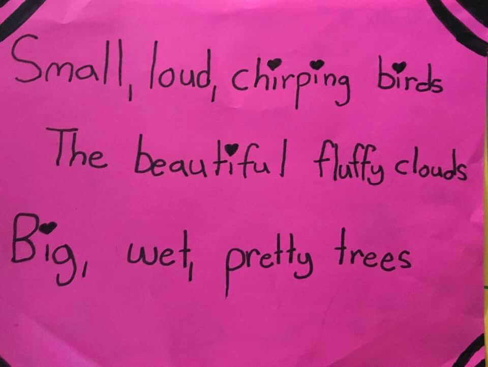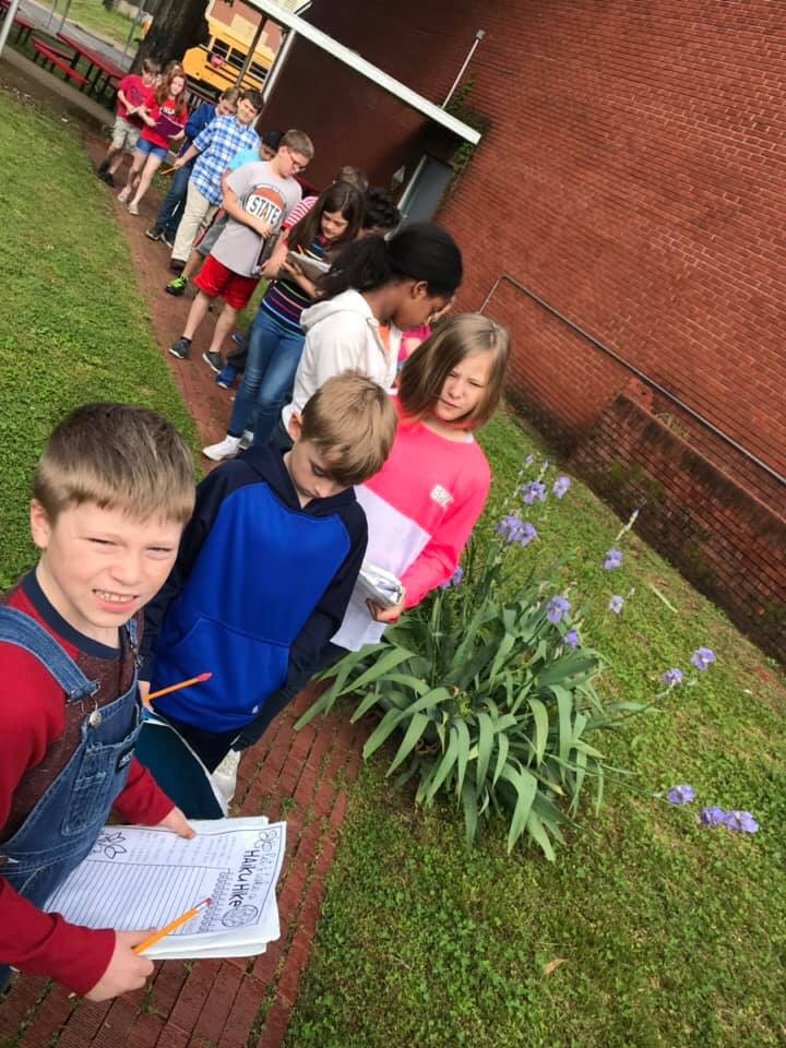 Fourth Graders went on a sensory walk Monday afternoon after testing to find inspiration for our Haiku writing.